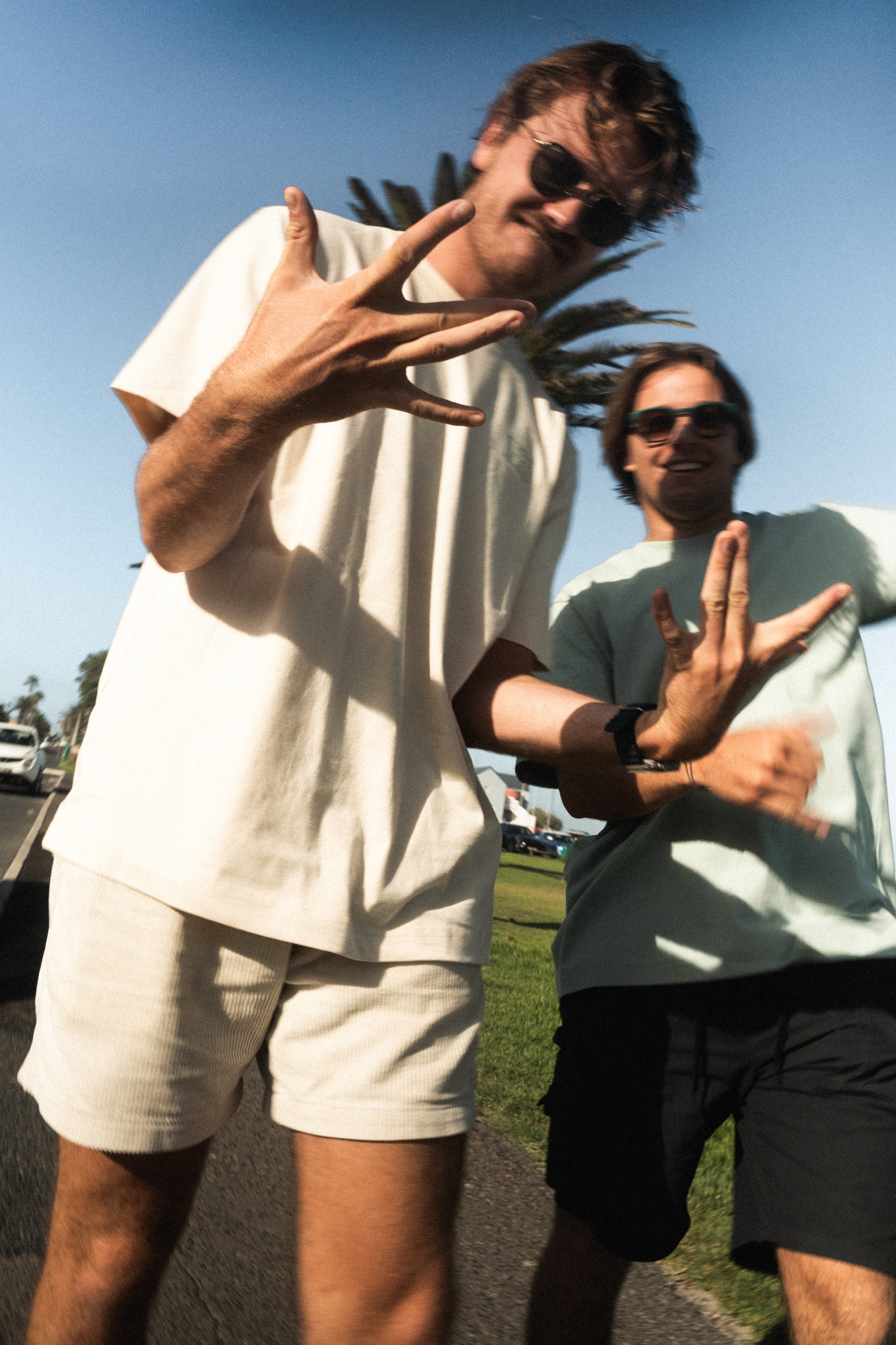 Available in two fresh colors: sand white and ocean green. Featuring a subtle front print and original back graphic inspired by the freedom and power of kitesurfing.
